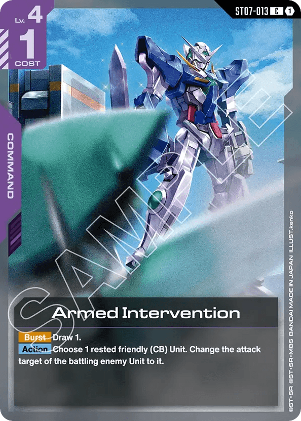 - [Burst] Draw 1. — [Action] Choose 1 rested friendly (CB) Unit. Change the attack target of the battling enemy Unit to it.