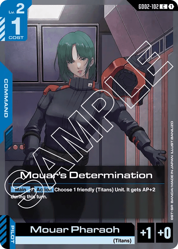 - [Main]/[Action] Choose 1 friendly (Titans) Unit. It gets AP+2 during this turn. — [Pilot] [Mouar Pharaoh]