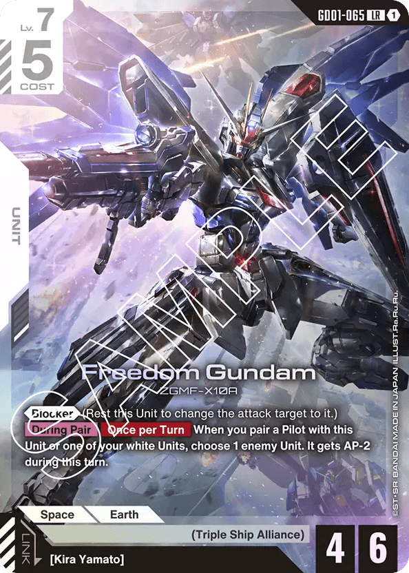 <Blocker> (Rest this Unit to change the attack target to it.) — [During Pair] [Once per Turn] When you pair a Pilot with this Unit or one of your white Units, choose 1 enemy Unit. It gets AP-2 during this turn.