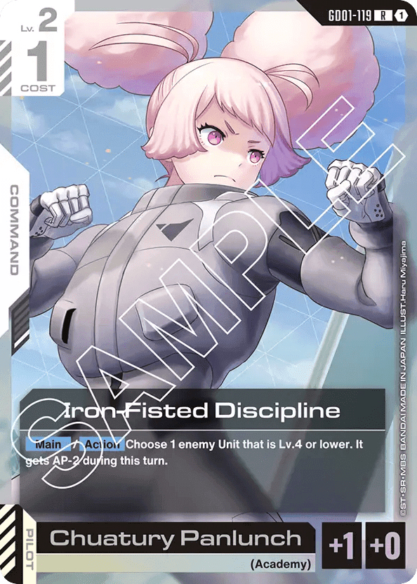 - [Main]/[Action] Choose 1 enemy Unit that is Lv.4 or lower. It gets AP-2 during this turn. — [Pilot] [Chuatury Panlunch]
