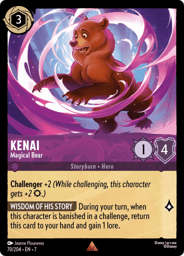 During your turn, when this character is banished in a challenge, return this card to your hand and gain 1 lore.