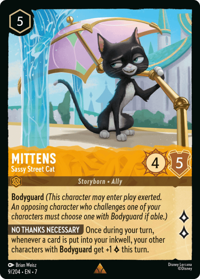 Once during your turn, whenever a card is put into your inkwell, your other characters with Bodyguard get +1 {Lore} this turn.