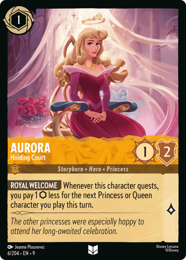 Whenever this character quests, you pay 1 {Ink} less for the next Princess or Queen character you play this turn.