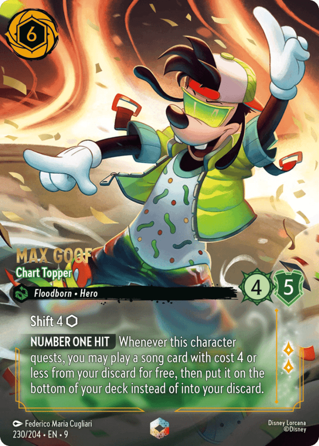 Whenever this character quests, you may play a song card with cost 4 or less from your discard for free, then put it on the bottom of your deck instead of into your discard.