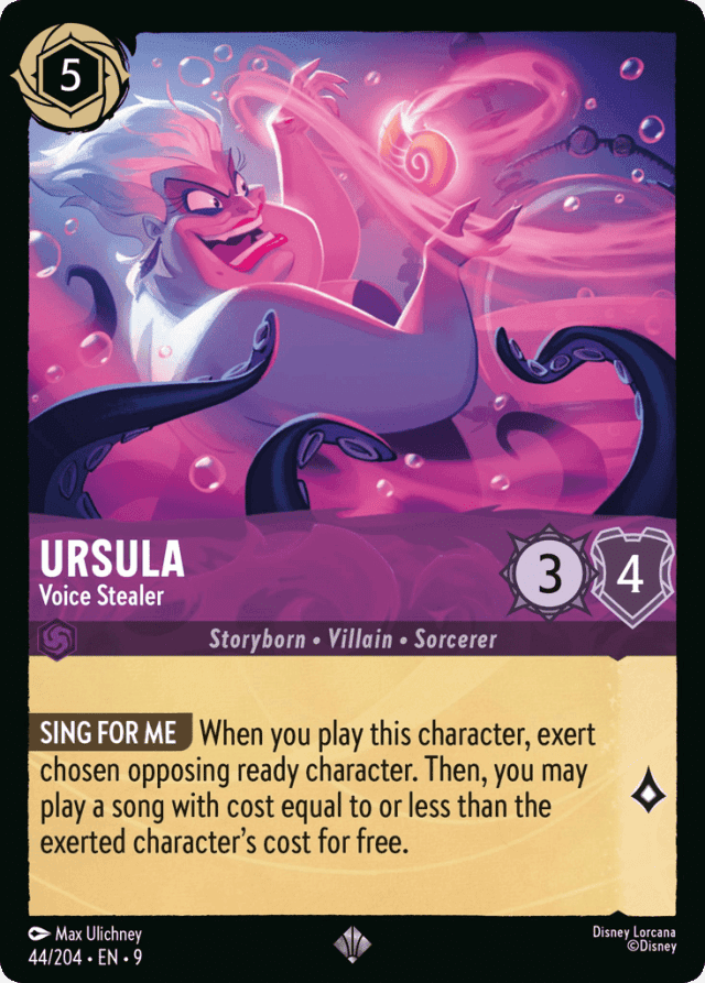 When you play this character, exert chosen opposing ready character. Then, you may play a song with cost equal to or less than the exerted character's cost for free.