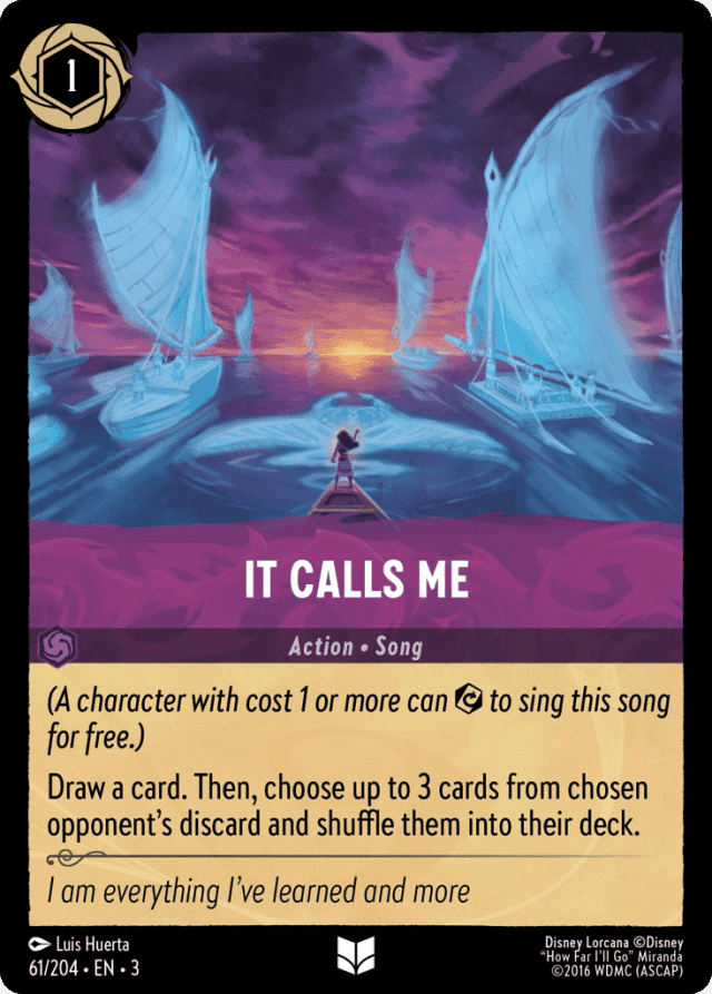 (A character with cost 1 or more can {Exert} to sing this song for free.) Draw a card. Then, choose up to 3 cards from chosen opponent's discard and shuffle them into their deck.