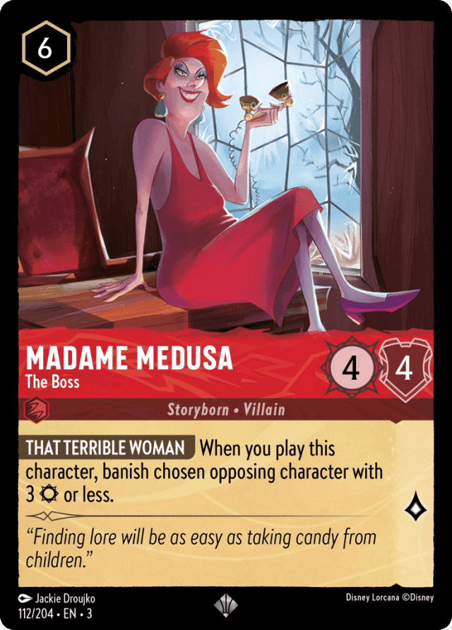 When you play this character, banish chosen opposing character with 3 {Strength} or less.