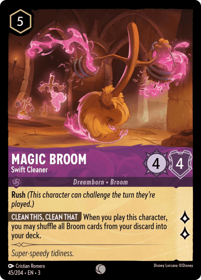 When you play this character, you may shuffle all Broom cards from your discard into your deck.