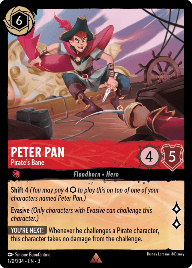 Whenever he challenges a Pirate character, this character takes no damage from the challenge.