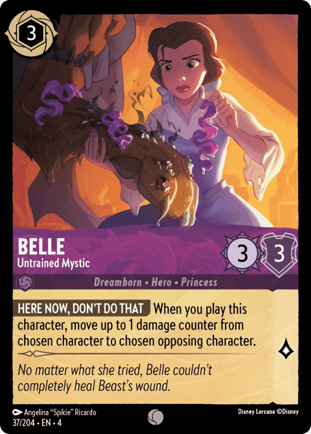 When you play this character, move up to 1 damage counter from chosen character to chosen opposing character.