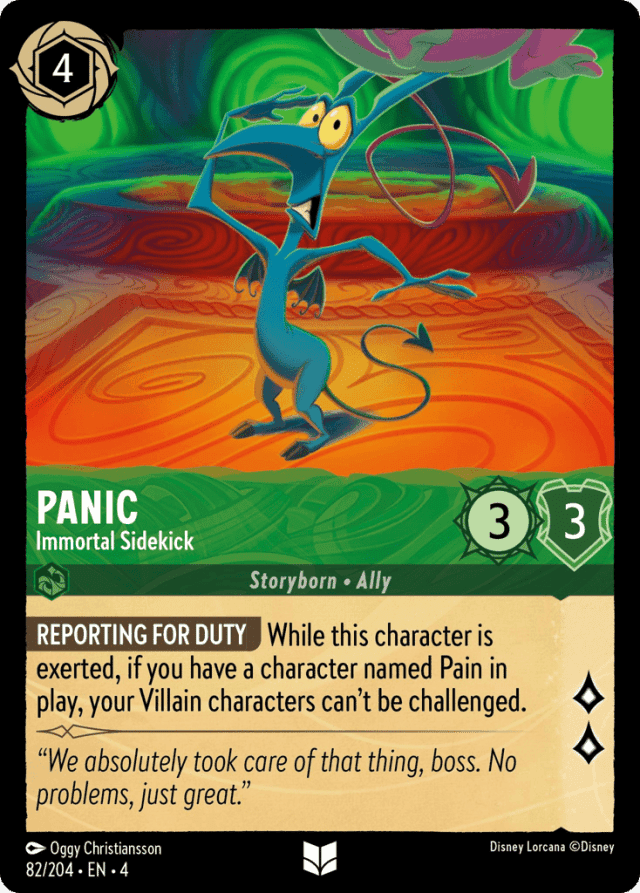 While this character is exerted, if you have a character named Pain in play, your Villain characters can't be challenged.