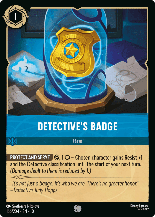 {Exert} — Chosen character gains Resist +1 and the Detective classification until the start of your next turn. (Damage dealt to them is reduced by 1.)