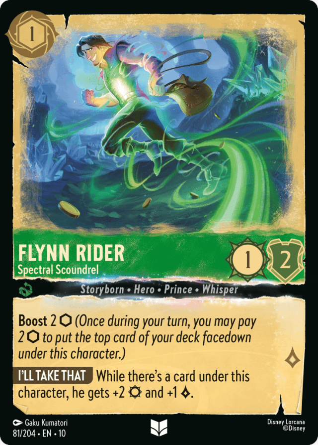 While there's a card under this character, he gets +2 {Strength} and +1 {Lore}.