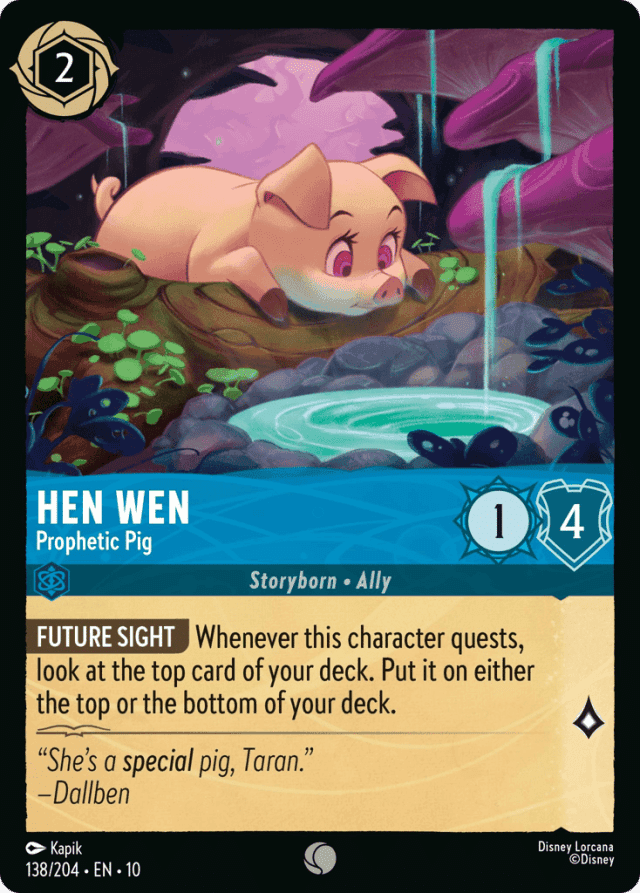 Whenever this character quests, look at the top card of your deck. Put it on either the top or the bottom of your deck.