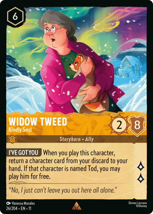 When you play this character, return a character card from your discard to your hand. If that character is named Tod, you may play him for free.