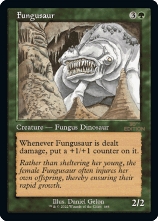 Rather than sheltering her young, the female Fungusaur often injures her own offspring, thereby ensuring their rapid growth.