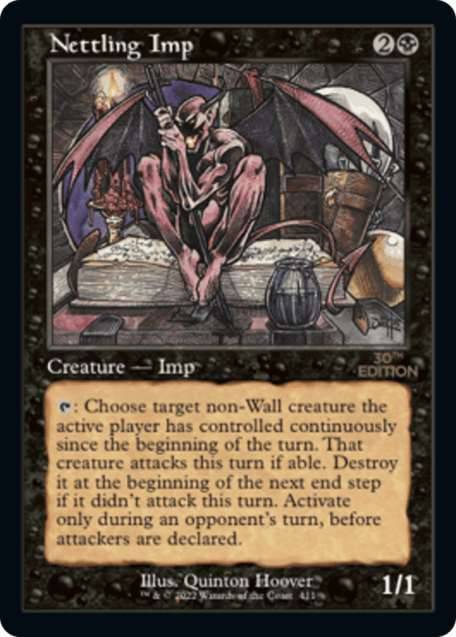 If the Imp leaves the battlefield before the end of the turn, the creature still is destroyed. — The creature is destroyed if it does not attack because it simply can’t do so legally. — You can use this effect on a creature you know won’t be able to attack. For example, you can use it on a tapped creature. — If a turn has multiple combat phases, the ability can only be activated before the beginning of the declare attackers step of the first combat phase in that turn.