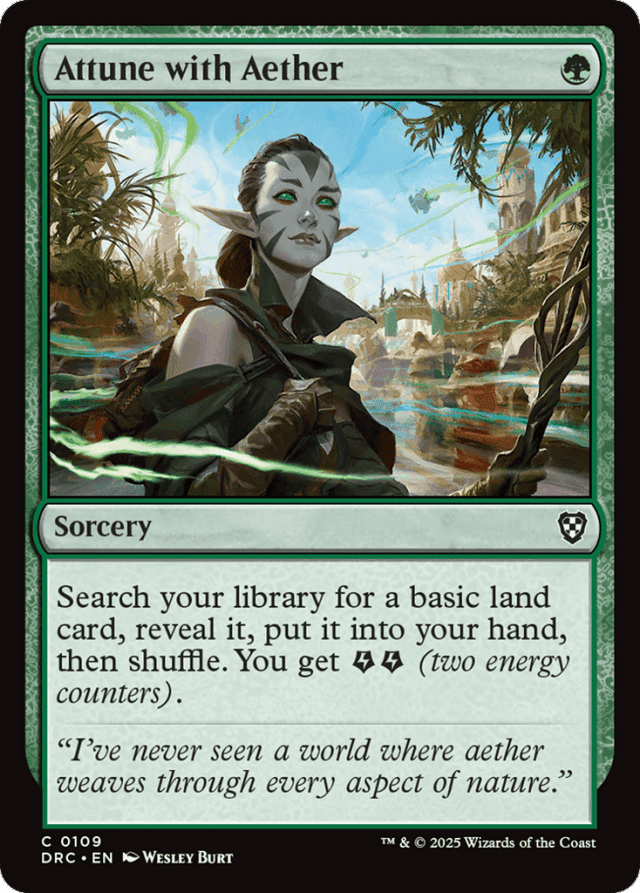 Search your library for a basic land card, reveal it, put it into your hand, then shuffle. You get {E}{E} (two energy counters).