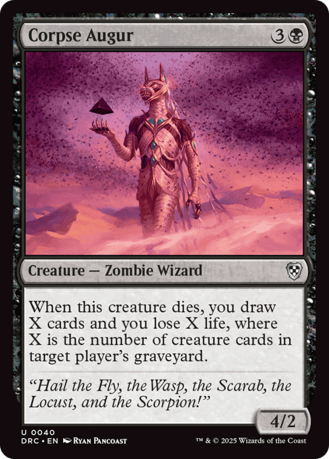 When this creature dies, you draw X cards and you lose X life, where X is the number of creature cards in target player's graveyard.