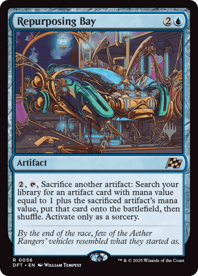{2}, {T}, Sacrifice another artifact: Search your library for an artifact card with mana value equal to 1 plus the sacrificed artifact's mana value, put that card onto the battlefield, then shuffle. Activate only as a sorcery.