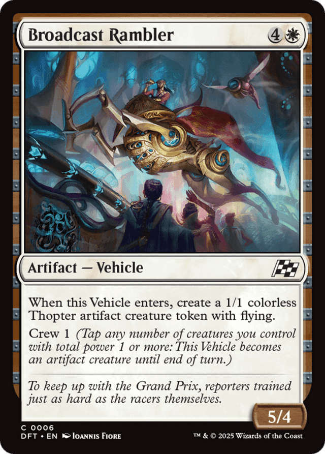 When this Vehicle enters, create a 1/1 colorless Thopter artifact creature token with flying. Crew 1 (Tap any number of creatures you control with total power 1 or more: This Vehicle becomes an artifact creature until end of turn.)