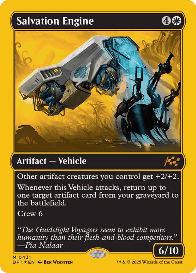 Other artifact creatures you control get +2/+2. Whenever this Vehicle attacks, return up to one target artifact card from your graveyard to the battlefield. Crew 6