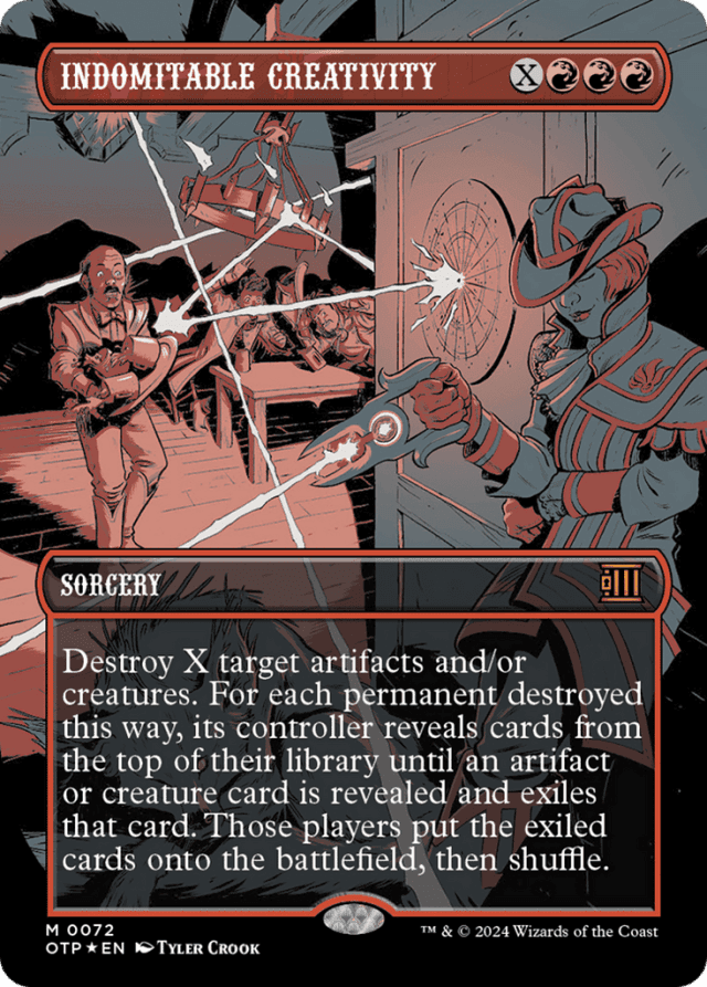Destroy X target artifacts and/or creatures. For each permanent destroyed this way, its controller reveals cards from the top of their library until an artifact or creature card is revealed and exiles that card. Those players put the exiled cards onto the battlefield, then shuffle.