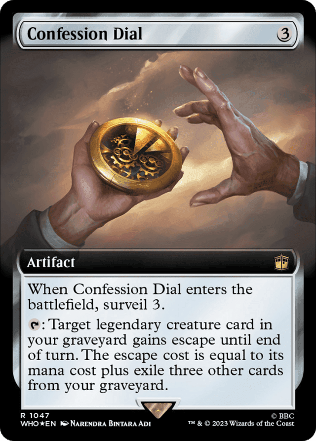 When this artifact enters, surveil 3. {T}: Target legendary creature card in your graveyard gains escape until end of turn. The escape cost is equal to its mana cost plus exile three other cards from your graveyard. (You may cast it from your graveyard for its escape cost this turn.)
