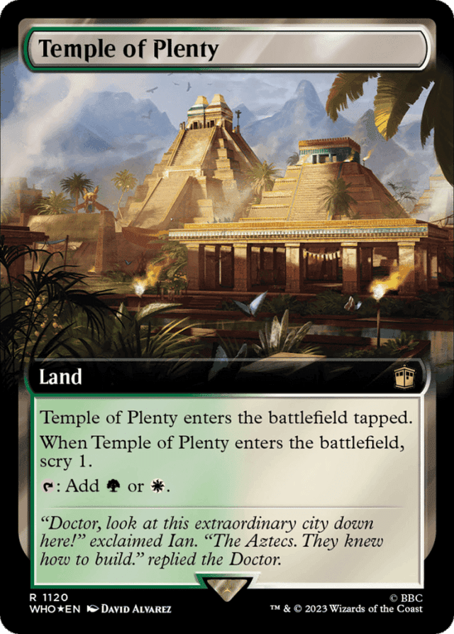 This land enters tapped. When this land enters, scry 1. (Look at the top card of your library. You may put that card on the bottom.) {T}: Add {G} or {W}.