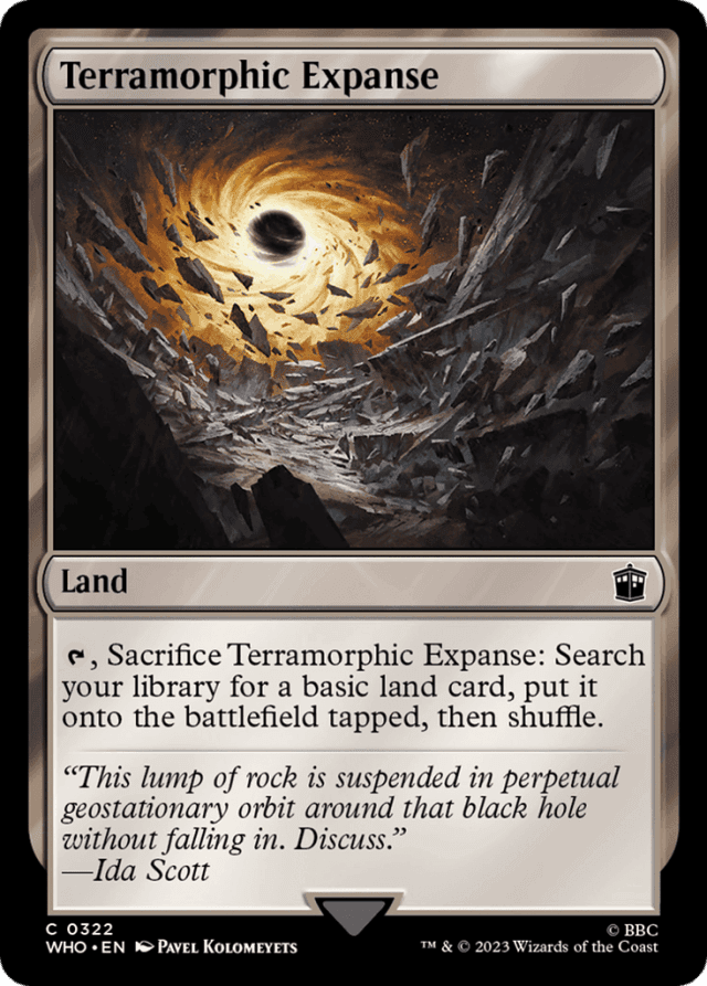 "This lump of rock is suspended in perpetual geostationary orbit around that black hole without falling in. Discuss." —Ida Scott