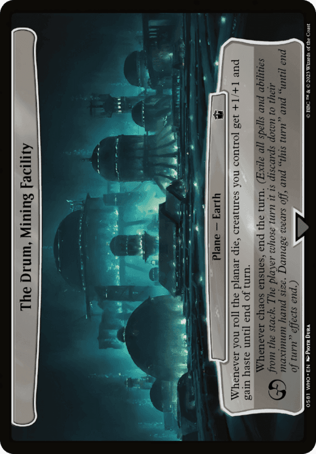 Whenever you roll the planar die, creatures you control get +1/+1 and gain haste until end of turn. Whenever chaos ensues, end the turn. (Exile all spells and abilities from the stack. The player whose turn it is discards down to their maximum hand size. Damage wears off, and "this turn" and "until end of turn" effects end.)