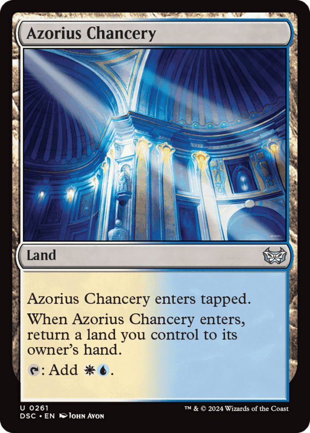 This land enters tapped. When this land enters, return a land you control to its owner's hand. {T}: Add {W}{U}.