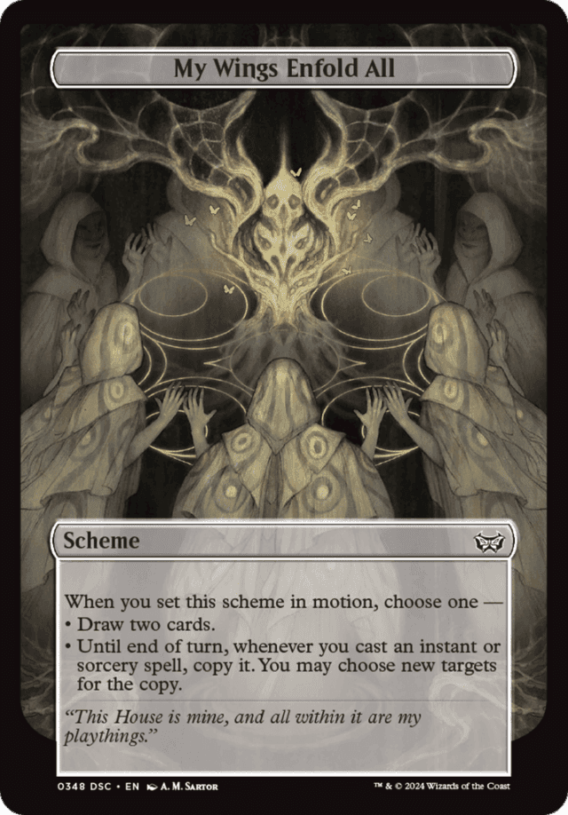 When you set this scheme in motion, choose one — • Draw two cards. • Until end of turn, whenever you cast an instant or sorcery spell, copy it. You may choose new targets for the copy.