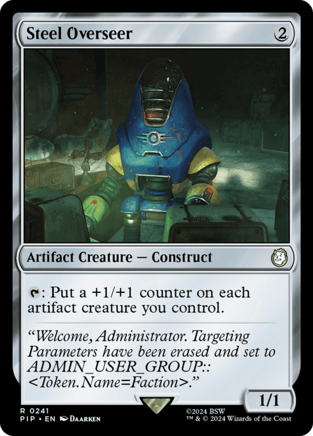 Steel Overseer's ability puts a +1/+1 counter on each artifact creature you control, including Steel Overseer.