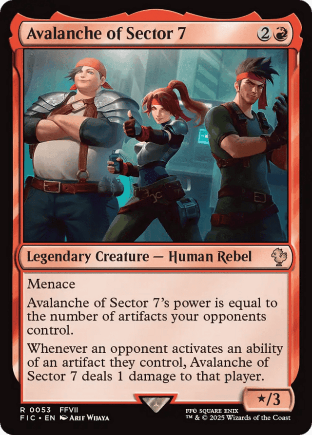 Menace Avalanche of Sector 7's power is equal to the number of artifacts your opponents control. Whenever an opponent activates an ability of an artifact they control, Avalanche of Sector 7 deals 1 damage to that player.