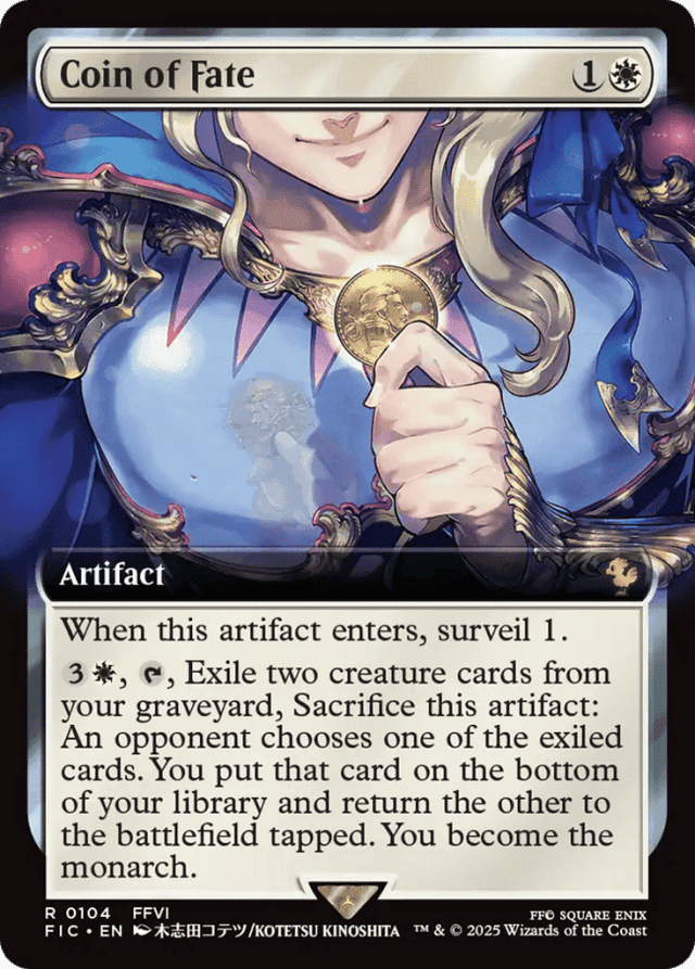 When this artifact enters, surveil 1. {3}{W}, {T}, Exile two creature cards from your graveyard, Sacrifice this artifact: An opponent chooses one of the exiled cards. You put that card on the bottom of your library and return the other to the battlefield tapped. You become the monarch.