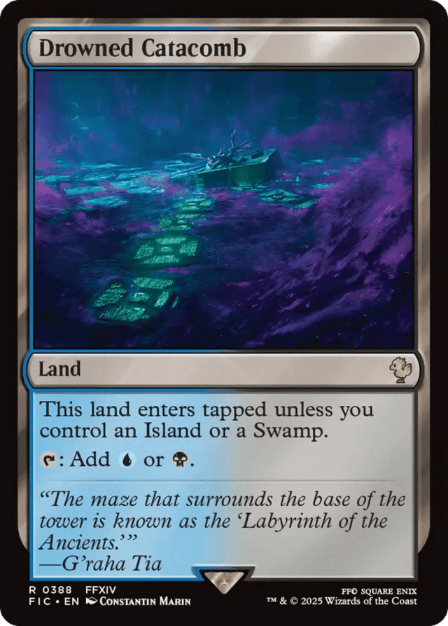 This land enters tapped unless you control an Island or a Swamp. {T}: Add {U} or {B}.