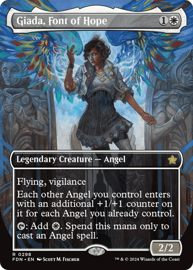 Flying, vigilance Each other Angel you control enters with an additional +1/+1 counter on it for each Angel you already control. {T}: Add {W}. Spend this mana only to cast an Angel spell.
