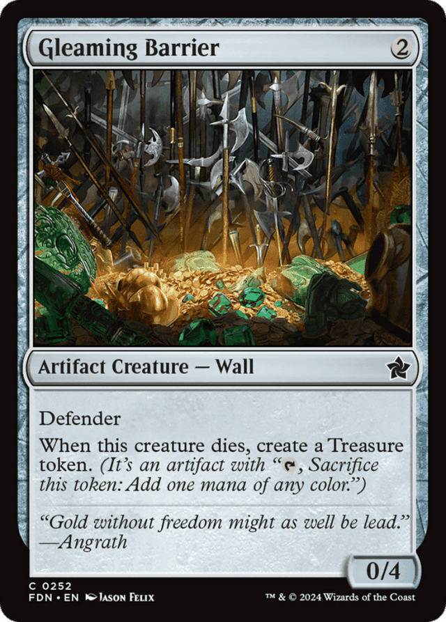 Defender When this creature dies, create a Treasure token. (It's an artifact with "{T}, Sacrifice this token: Add one mana of any color.")