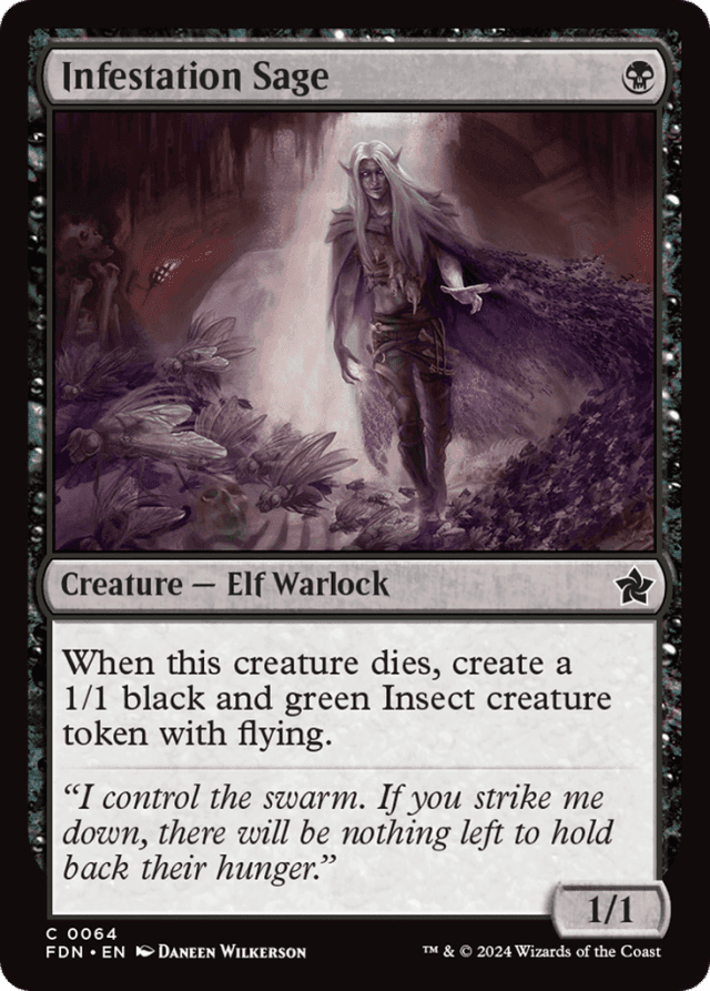 When this creature dies, create a 1/1 black and green Insect creature token with flying.