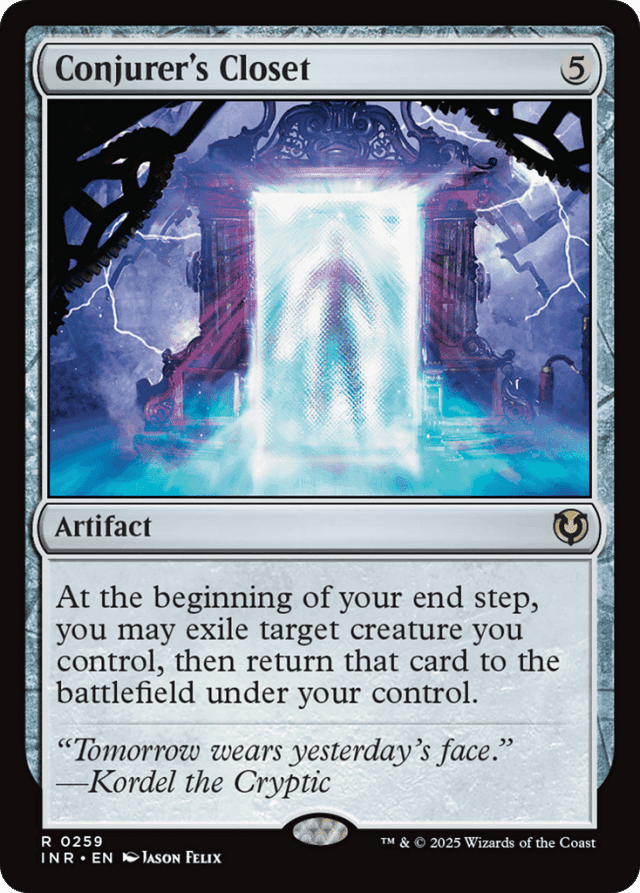 If a token is exiled this way, it will cease to exist and won't return to the battlefield. — If you gain control of a creature “until end of turn,” you control it during that turn's end step. — Once the exiled creature returns, it's considered a new object with no relation to the object that it was. Auras attached to the exiled creature will be put into their owners' graveyards. Equipment attached to the exiled creature will become unattached and remain on the battlefield. Any counters on the exiled creature will cease to exist. — When an effect returns the exiled card “under your control,” you control it indefinitely after that. In a multiplayer game, if a player leaves the game, all cards that player owns leave as well. If you leave the game, any creatures you control from Conjurer's Closet effect are exiled.