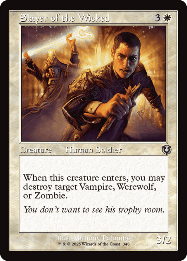 If you control the only Vampire, Werewolf, or Zombie, you must target it with Slayer of the Wicked’s ability. You choose whether or not to destroy the target when the ability resolves.