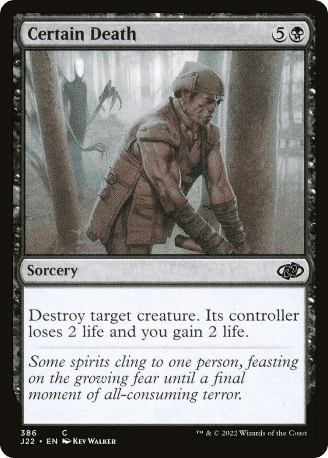 If the creature becomes an illegal target for Certain Death, no player gains or loses life. If it’s a legal target but isn’t destroyed, most likely due to having indestructible, its controller still loses 2 life and you gain 2 life. — The targeted creature will have already left the battlefield before its controller loses 2 life and you gain 2 life. If it has any abilities that care about gaining or losing life, they won’t apply.