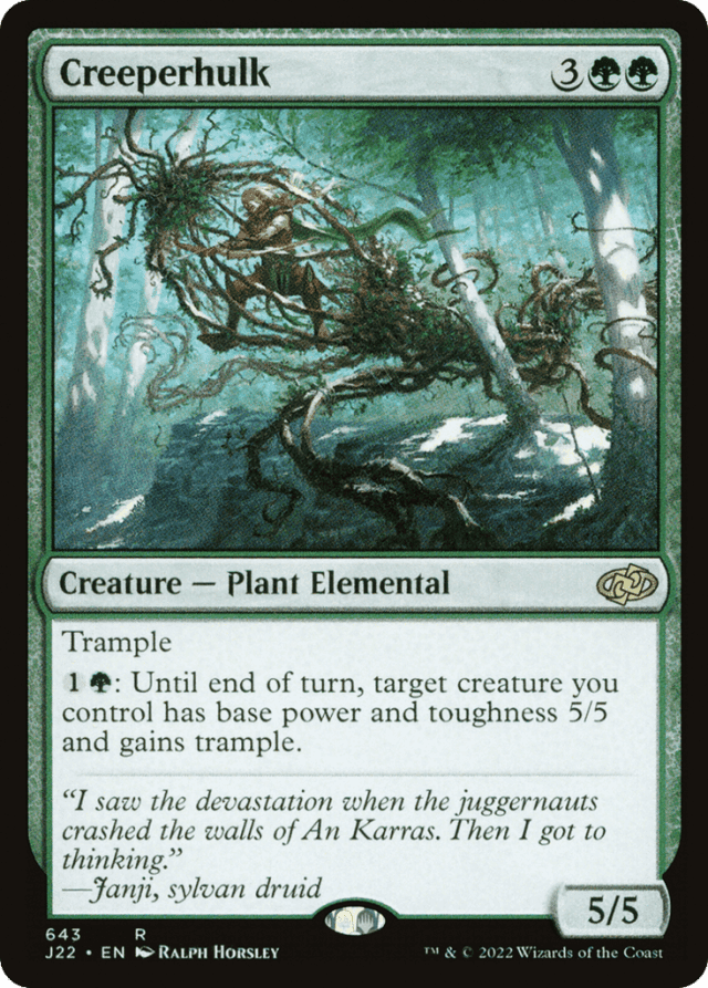 Effects that modify the target creature’s power and/or toughness, such as the effect of Giant Growth or Glorious Anthem, will apply to the creature no matter when they started applying. The same is true for counters that affect the target creature’s power and toughness and effects that switch its power and toughness. — The activated ability overwrites all previous effects that set the target creature’s base power and/or toughness to specific values. Other effects that set its base power and/or toughness that start to apply after Creeperhulk’s ability resolves will overwrite Creeperhulk’s effect.