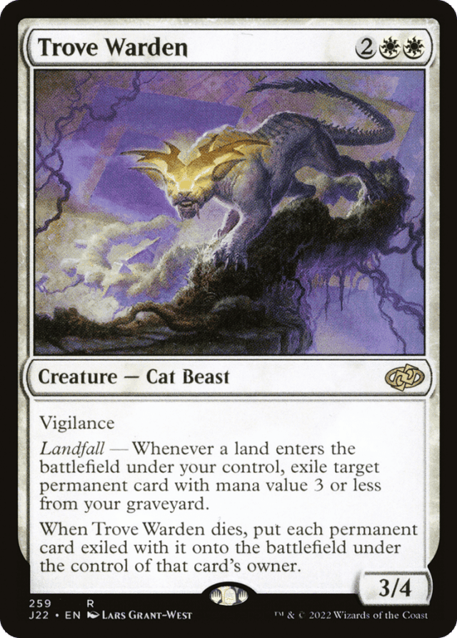 Vigilance Landfall — Whenever a land you control enters, exile target permanent card with mana value 3 or less from your graveyard. When this creature dies, put each permanent card exiled with it onto the battlefield under the control of that card's owner.