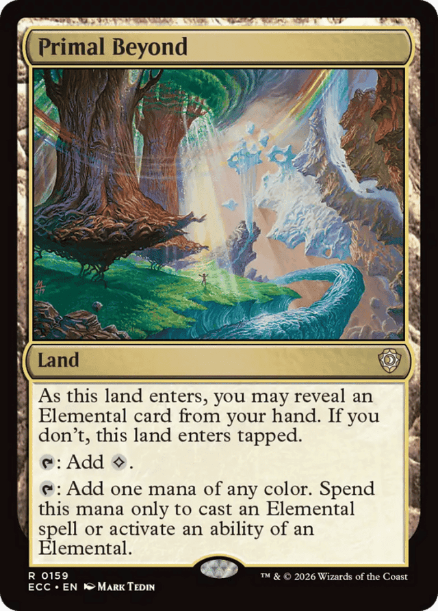 As this land enters, you may reveal an Elemental card from your hand. If you don't, this land enters tapped. {T}: Add {C}. {T}: Add one mana of any color. Spend this mana only to cast an Elemental spell or activate an ability of an Elemental.