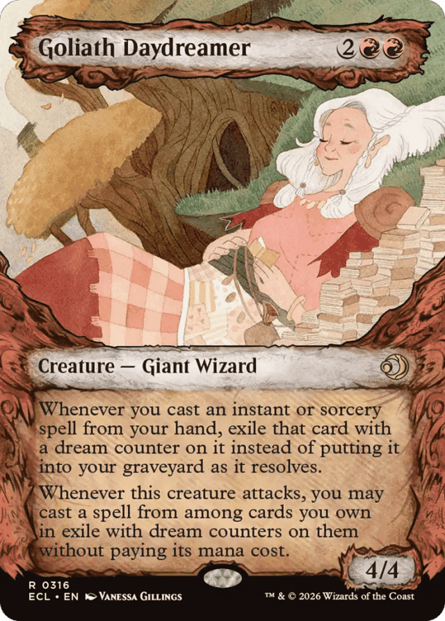Whenever you cast an instant or sorcery spell from your hand, exile that card with a dream counter on it instead of putting it into your graveyard as it resolves. Whenever this creature attacks, you may cast a spell from among cards you own in exile with dream counters on them without paying its mana cost.