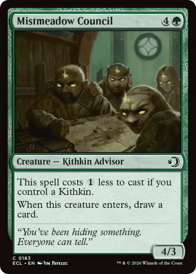 This spell costs {1} less to cast if you control a Kithkin. When this creature enters, draw a card.