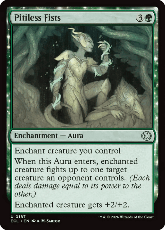 Enchant creature you control When this Aura enters, enchanted creature fights up to one target creature an opponent controls. (Each deals damage equal to its power to the other.) Enchanted creature gets +2/+2.