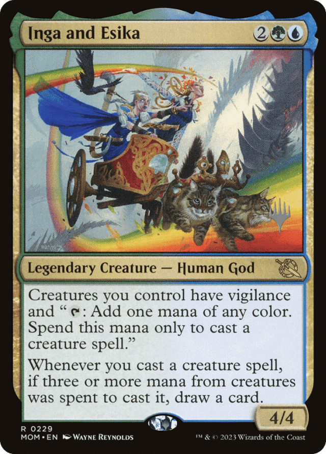 Creatures you control have vigilance and "{T}: Add one mana of any color. Spend this mana only to cast a creature spell." Whenever you cast a creature spell, if three or more mana from creatures was spent to cast it, draw a card.